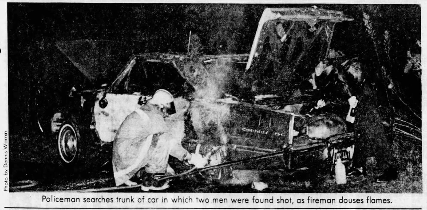 Slain was Edward A. Barabas, 27, a parolee from Folsom Prison, who had been shot and burned. James Terrill Craig, 38, was in critical condition at University Medical center, part of his jaw blown away by at least one shotgun blast.